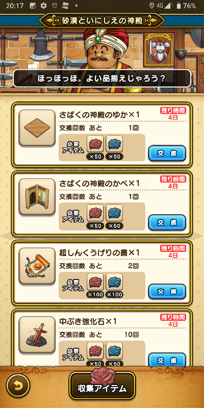 さばくの神殿のゆか、さばくの神殿のかべなどと交換しました。