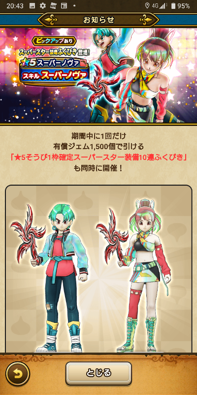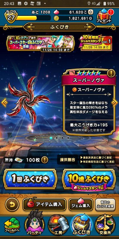 スーパーノヴァなどが当たるスーパースター装備ふくびきに挑戦しました。