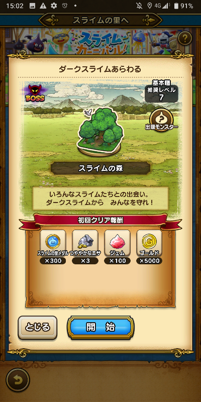 スライムカーニバルストーリークエスト第1章「ダークスライムあらわる」に挑戦しました。