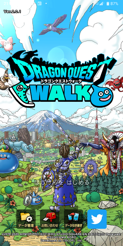 ドラクエウォークVer.2.0.1のタイトル画面。