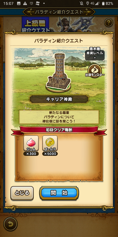 ドラクエウォークの上級職パラディン紹介クエストに挑戦しました。