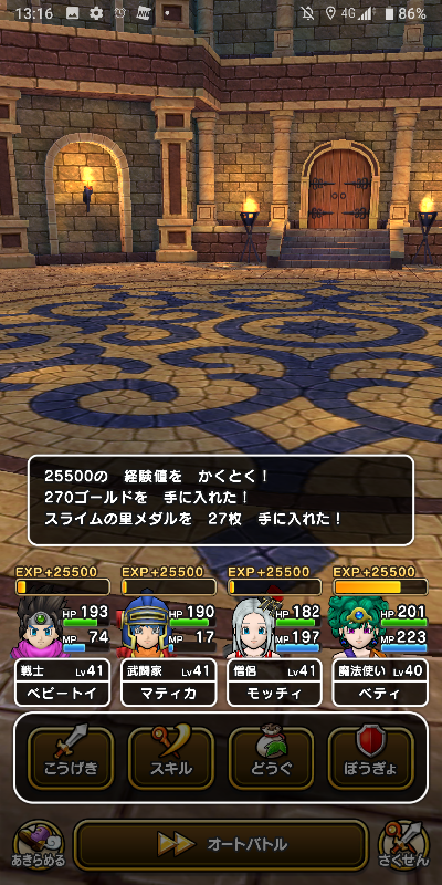 メタルブラザーズのみ4体倒して25500の経験値を獲得!