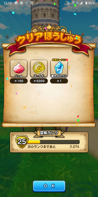 クリアほうしゅうをゲットしました。