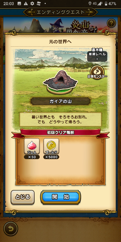 炎の山巣食う竜たちエンディングクエスト元の世界へに挑戦しました。