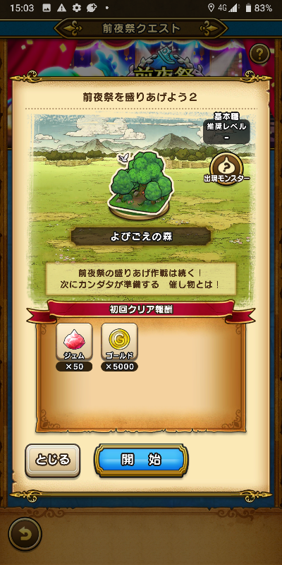 前夜祭クエスト前夜祭を盛りあげよう2に挑戦しました。