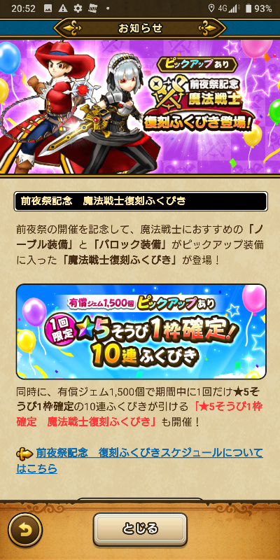 前夜祭記念魔法戦士復刻ふくびきに挑戦しました。
