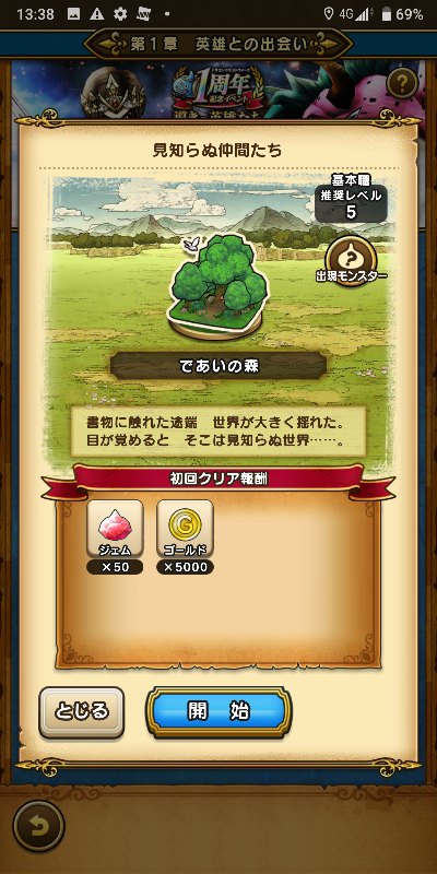 1周年記念イベント導きの英雄たちストーリークエスト第1章見知らぬ仲間たちに挑戦しました。