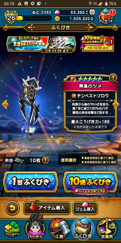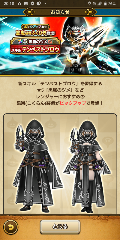黒嵐のツメなど黒嵐装備が当たる黒嵐装備ふくびきに挑戦しました。