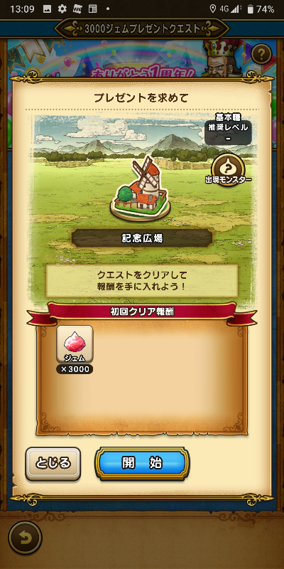 ありがとう1周年!3000ジェムプレゼントクエストに挑戦しました。