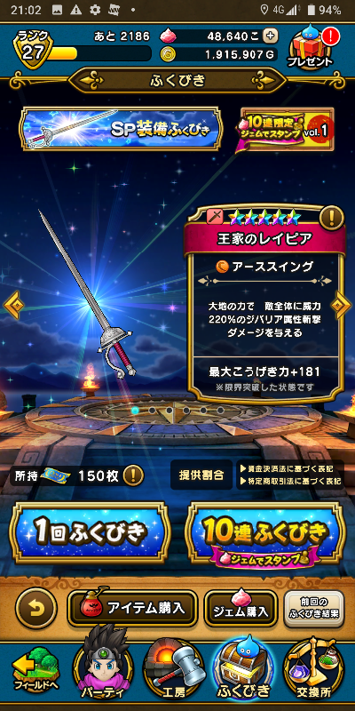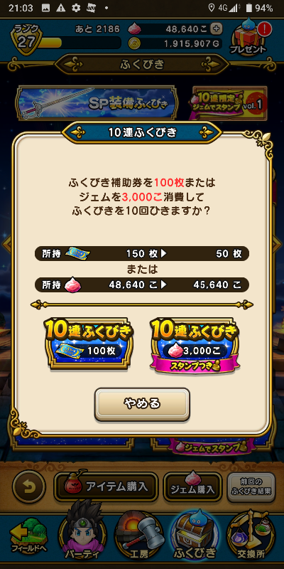 SP装備ふくびき補助券がたまったので10連ふくびきやってみましたよー。4回目です。
